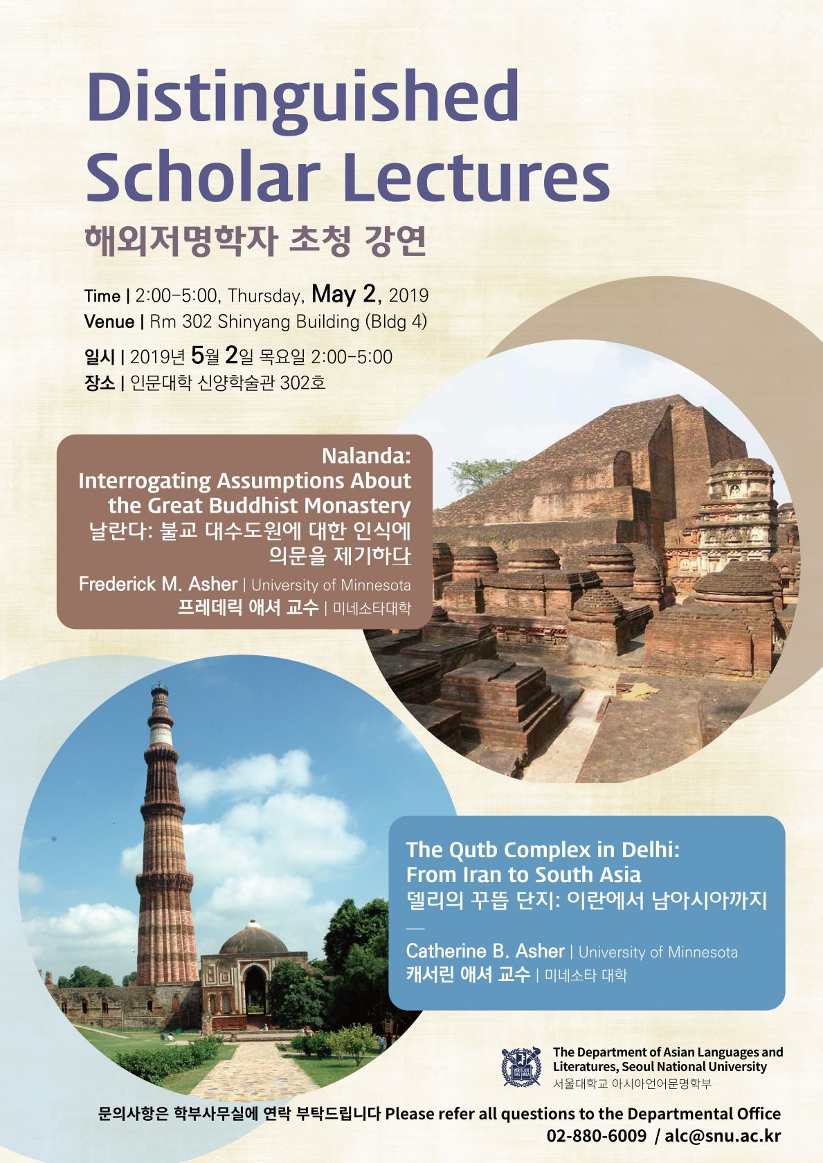 미네소타 대학교 프레데릭 애셔 교수님과 캐서린 애셔 교수님께서 날란사 사원과 델리의 모스크 단지에 대한 최근 연구를 소개할 예정입니다.