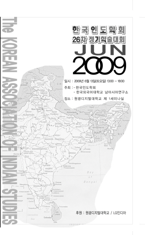 한국인도학회는 한국외국어대학교 남아시아연구소와 공동으로 6월 13일(토) 제 26차 정기학술대회를 원광디지털대학교에서 개최합니다.